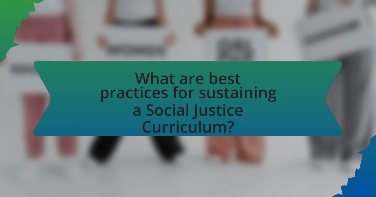 Best practices for sustaining a Social Justice Curriculum include continuous professional development for educators, integrating student voices, and fostering community partnerships. Continuous professional development ensures that educators remain informed about social justice issues and pedagogical strategies, which is supported by research indicating that ongoing training enhances teaching effectiveness (Darling-Hammond et al., 2017). Integrating student voices allows for a curriculum that reflects diverse perspectives and experiences, promoting engagement and relevance. Fostering community partnerships connects schools with local organizations, enriching the curriculum with real-world applications and resources. These practices collectively create a dynamic and responsive Social Justice Curriculum that evolves with societal changes.